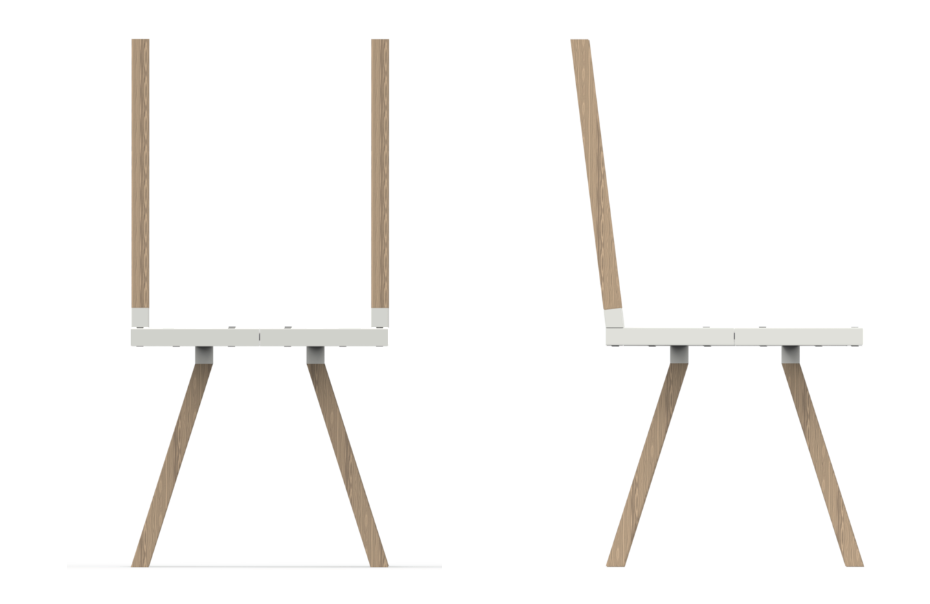 I was looking for the simplest and most versatile shape that would allow for the tailoring of chair sleeves around it. All the parts had to be sold and recycled separately, which meant no glue. To be a mannequin, it needed to be adaptable, and so I had to look at the joints needed for transformation. It had to allow for shape and size transformation, by expanding and contracting but also giving enough points of contact for the sleeves to attach. The solution presented consists of 28 parts that together make a chair mannequin. They can be assembled, disassembled and exchanged anytime, making it a never-ending adaptable and renewable product.